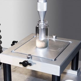 Measures the effect of movement speed on the flow of powders.